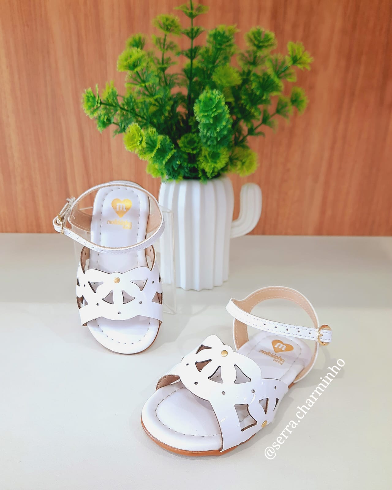 Se você busca o calçado perfeito que une elegância para ocasiões especiais e o conforto necessário para as brincadeiras do dia a dia, acabou de encontrar. Esta sandália branca com detalhes vazados a laser é a definição de delicadeza.